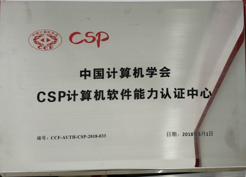 OD体育官方网站由于组织CCF CSP认证考试成绩突出,2018年5月成为39个首批CCF CSP认证授权挂牌单位之一;2018年7月被授予CSP认证优秀单位,全国获得该荣誉的仅26个高校。